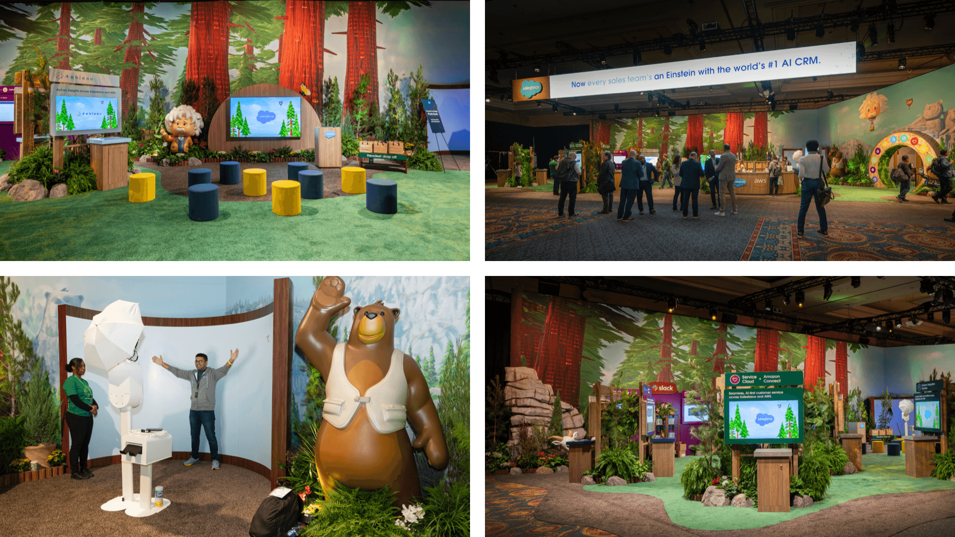 Salesforce excelled at AWS re:Invent, aiming to boost brand awareness and product visibility. The exhibit featured an engaging "quest" game, where attendees collected stamps through product demos, a match game, and a photo booth, redeeming them for swag. The custom booth included a theater and private meeting rooms. Notable additions were a large backdrop graphic and a dynamic LED hanging sign. An off-the-shelf Match Game, "Marketplace Memory," provided last-minute interactive engagement. The blend of digital tech and strategic design ensured a memorable and impactful presence.