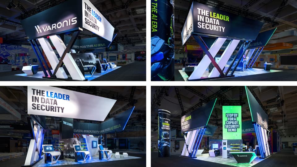 Varonis embodied their new brand identity at RSA, partnering with 3D Exhibits, a Sparks Company, for an immersive 30’ x 40’ exhibit, focusing on their transition from a legacy brand to a legendary one. The exterior architecture mimicked the Varonis logo, standing 12’ tall. LED video walls featuring content with key messaging were central to the space. After taking part in a presentation, attendees received a Protector-themed coin that could be redeemed for a custom hat. Demo stations in the space were designed with functionality in mind with ample storage available. The custom hat design station was a hit, with nearly 800 hats designed. The overall exhibit was a success with 40 in-booth presentations, 2,599 leads generated, and nearly 50 post-event meetings scheduled.