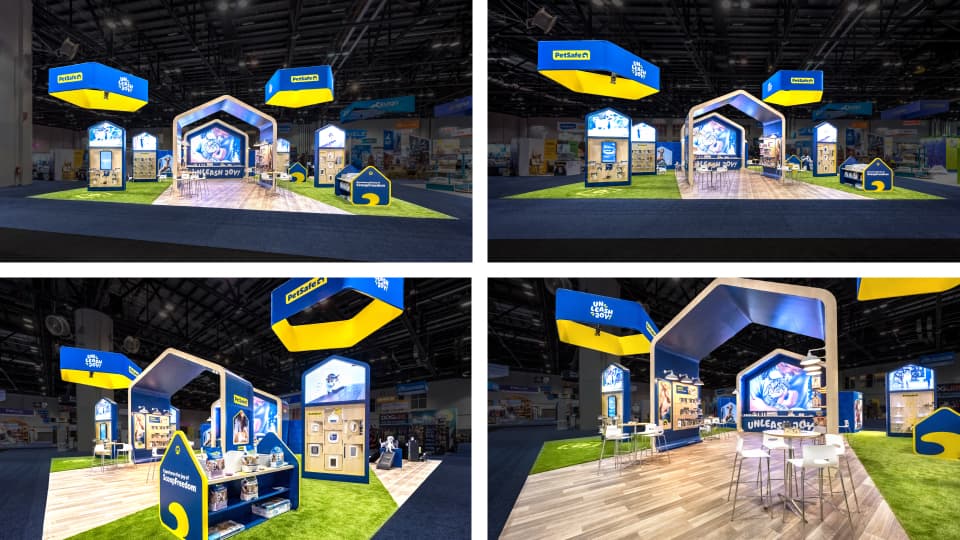 PetSafe's Global Pet Expo exhibit rolled out its new brand logo with creativity and functionality. Spanning the 50x50 space, 3D Exhibits incorporated the logo's design throughout the booth from archways to product towers. Hands-on demos, private meeting spaces, and digital interactions immersed attendees, while fabrication techniques like SEG backlit fabrics added refinement. An interactive "Wireless Fence" display engaged visitors with activation pads and a touchscreen monitor, leaving a lasting impression of innovation.